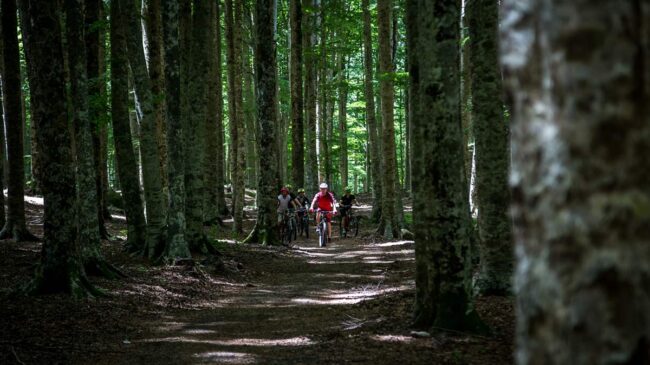Escursione in bici alla portata di tutti, sul sentiero che collega i poli dell’anello di mezza montagna del Monte Amiata. Il percorso non presenta tratti particolarmente tecnici e si alterna tra asfal…