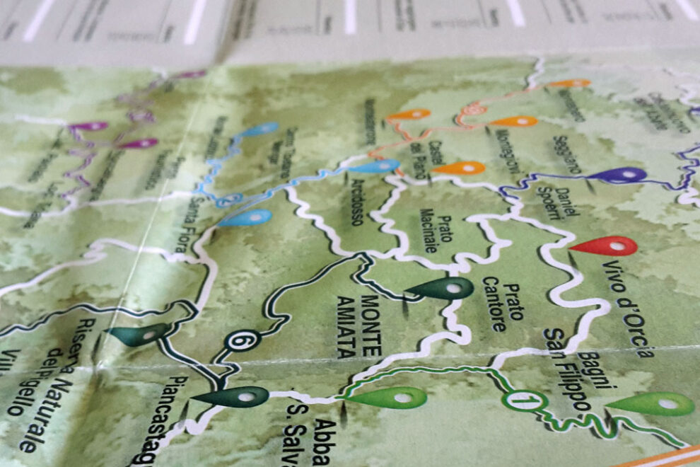 Nuova Cartina dei Sentieri Del Monte Amiata, con sentieri che collegano i borghi del territorio fino alla Vetta.
