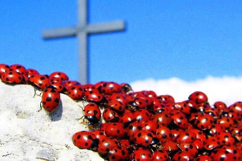 Qui sul Monte Labro, a primavera, le rocce si colorano di rosso e tante piccole creature tornano a volare dopo il lungo riposo.