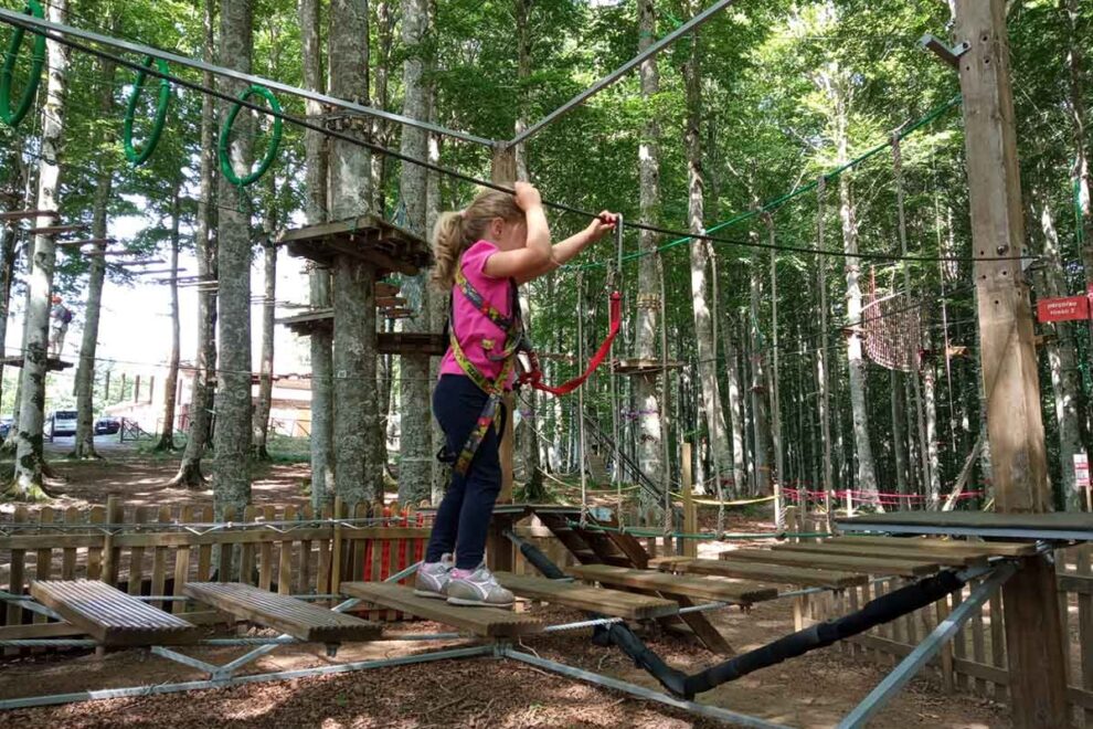 All’interno del boschi di faggi, ad un’altezza variabile a seconda dell’età, si innalza l’Indiana Park Amiata, il parco avventura sospeso del Monte Amiata. Si trova a 1400 metri sul livello del mare proprio davanti alle piste da sci, su un’ampia area verde dove potersi rilassare e giocare affacciati sulla vetta del Monte Amiata.
