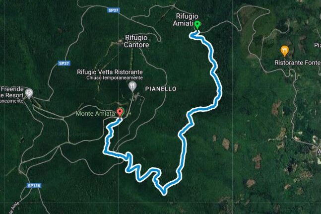 Traccia gpx dell’anello che dal primo rifugio si snoda dentro la faggeta del monte amiata lungo la pista da sci di fondo.