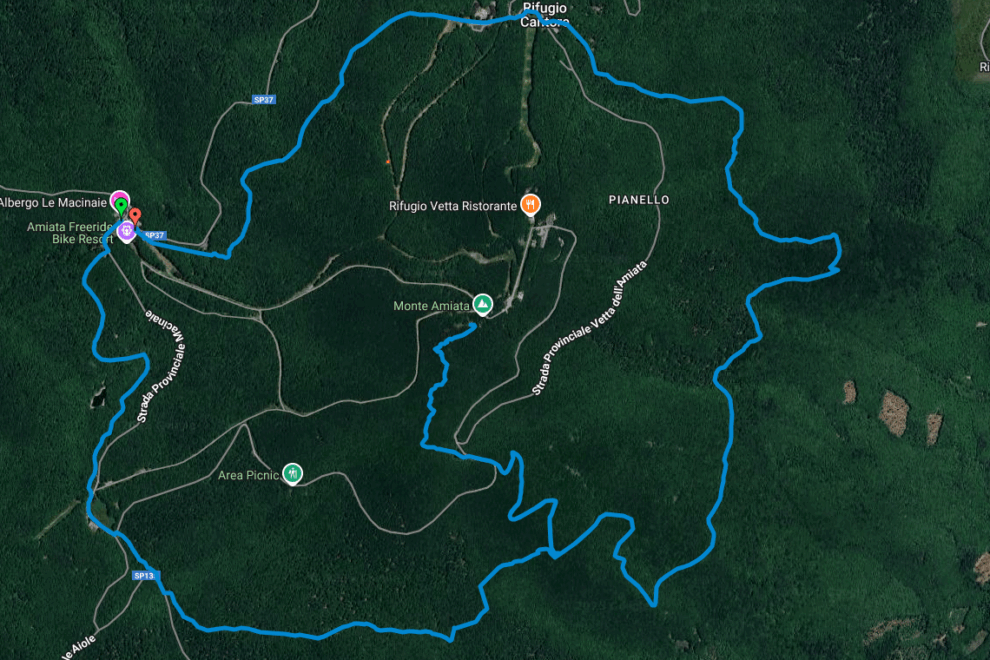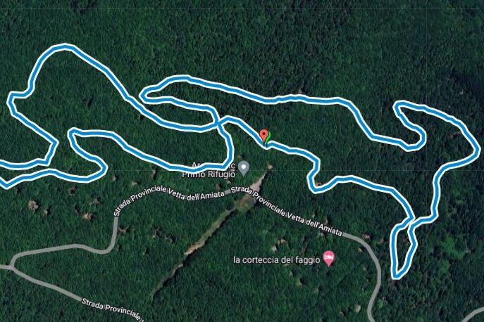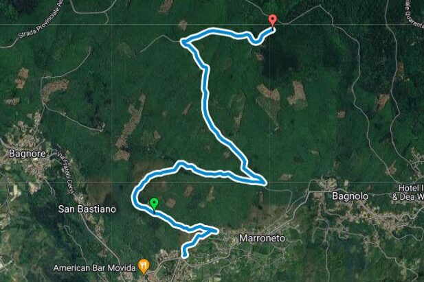 Traccia gpx del sentiero ad anello che parte e torna al Primo Rifugio passando da Loc. Le Macinaie, Marsigliana, Cantore a 1400 mt s.l.m.