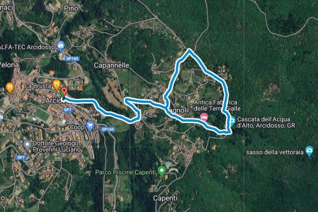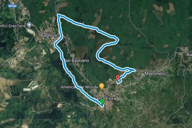 Traccia gpx del sentiero da che Santa Fiora sale verso il bosco per poi passare da Bagnore e tornare a Santa Fiora. O, in alternativa, collegarsi all’anello del Monte Amiata.