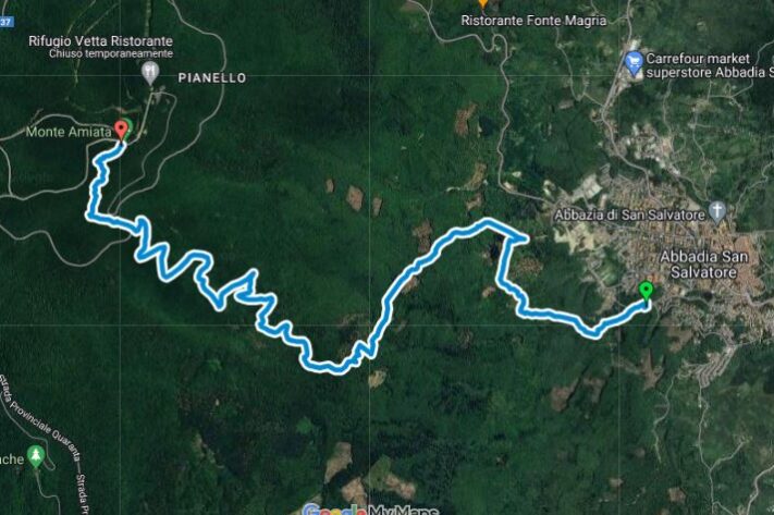 Traccia gpx del percorso trekking e bike per raggiungere la vetta del Monte Amiata partendo dall’abitato di Abbadia San Salvatore.