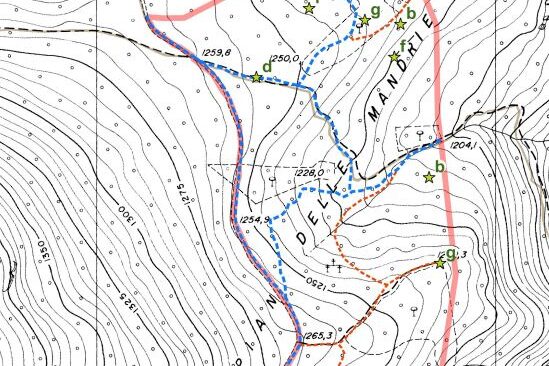 Il sentiero lungo tratto il vecchio tracciato realizzato, tra gli anni ’50 e ’60, dagli operai che lavoravano agli imboschimenti nei cosiddetti “Cantieri Fanfani”.